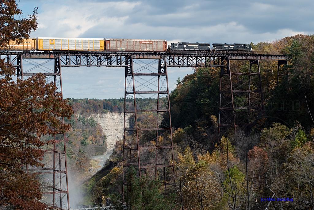 NS 8446 leads train 13T across the Portage Bridge. The 8446 started out life as LMS 750 and then as CR 6276 before becoming an NS unit in 1999.