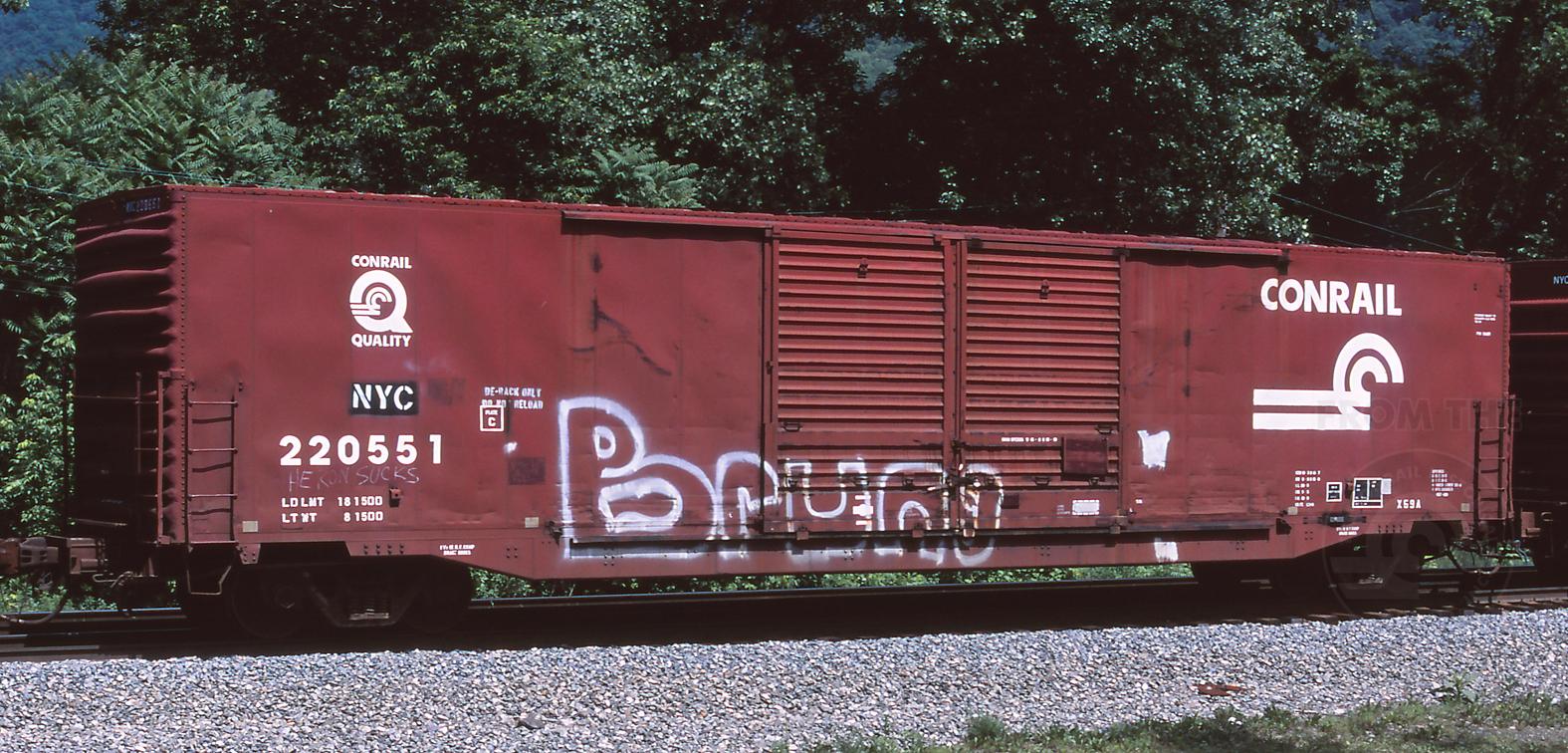 Previous Next Car is ex CR 220551/PC 220551/PRR 90085 and was built 7-64. It was deleted by 2009. Photo By Shane Smith Equipment Type Class X59A Conrail Number 220551 Post Conrail Owner CSX Post Conrail Number CSX 220551 Year 2004 Original Date 5/30/04 Collection CRHS Conrail Photo Archive Contributions