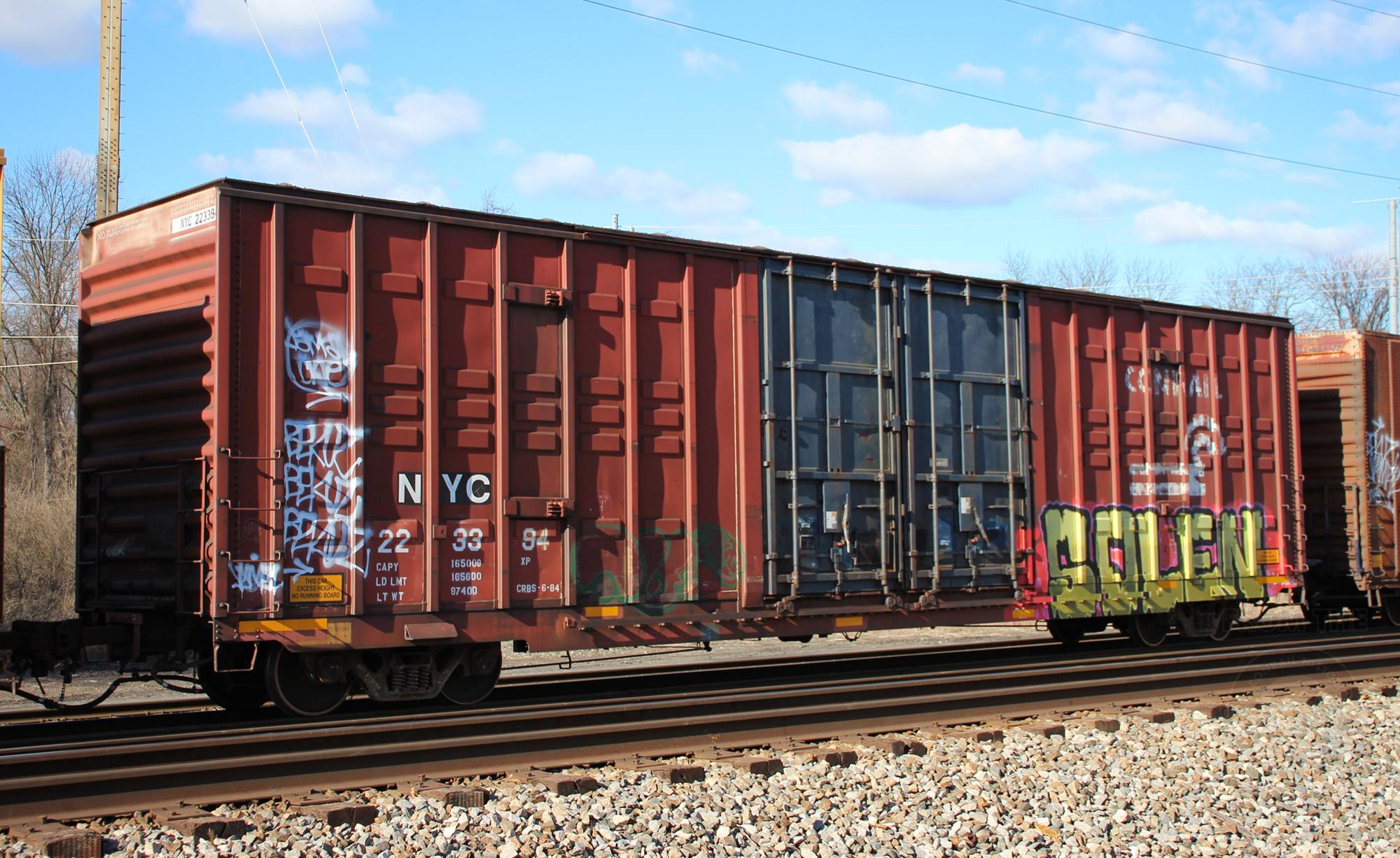 NYC 223394 is seenat Elsmere, DE on 3/4/23. Car is ex CR 223394 and was built 10-78 by Berwick.