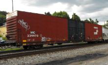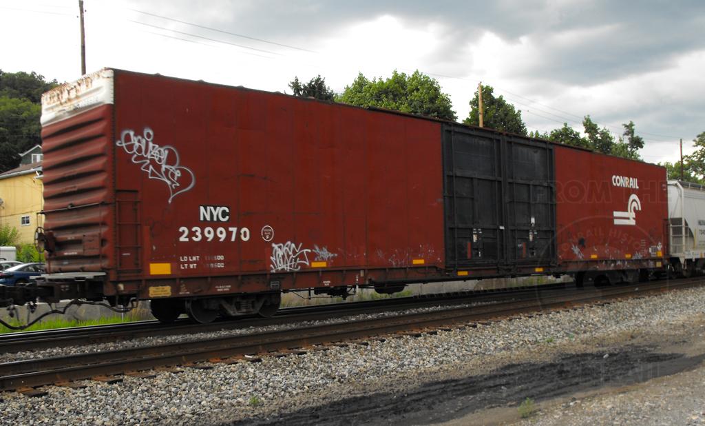 NYC 239970 is seen in CSX Q359-29 at Cumberland MD on 6/29/13. Car is ex CR 239970/CR 293641/PRR 125801 and was built 7-67.