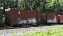 NYC 242387 is seen on Q359-10 at Mount Savage MD on 8/9/12. Car is ex CR 242387/CR 295336/PC 295336, built by Thrall 10-69 and wearing CR paint applied in 3-94.