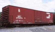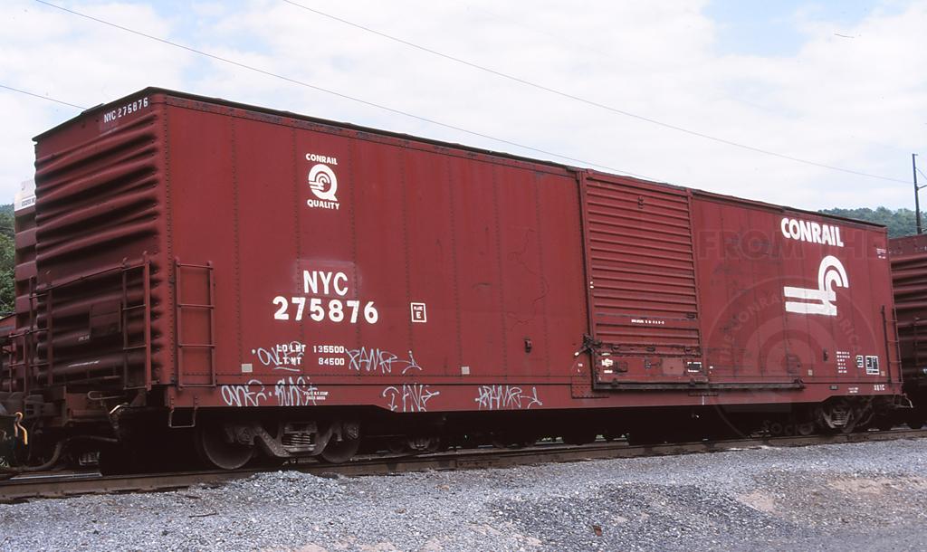NYC 275876 is seen at Cumberland MD on 6/3/02. Car is ex CR 275876/PRR 111872 and was built 3-66.