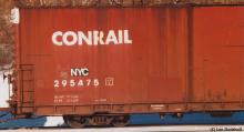 NYC 295475, which is ex CR 295475/PC, is seen here in early 2001 wearing a large Conrail logo.
