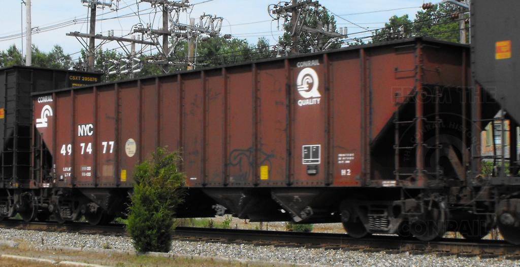 NYC 497477 is seen on K396-08 at Newark DE on 7/10/08. Car was built by Holidaysburg Car Shops in 1994
