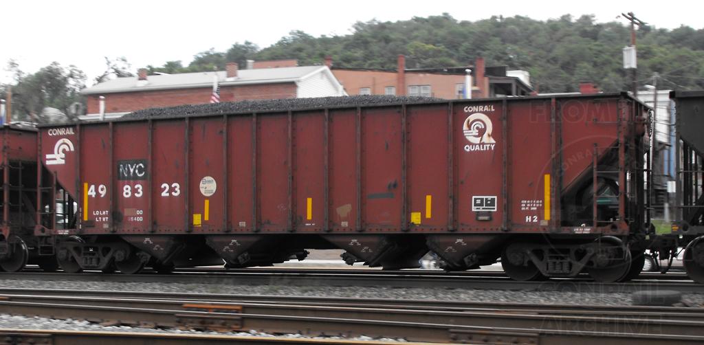 NYC 498323 is seen on V645-07 at Cumberland MD on 8/9/12. Car is ex CR 498323 and was built by HCS in 7-96.