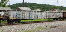 NYC 56302 is seen in the consist of CSX Q353-12 at Cumberland, MD on 6/12/14. Car is ex CR 56302/PC 598202 and was built 5-68.