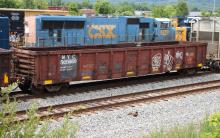 NYC 565986is seen in the consist of CSX Q316-23 at Cumberland, MD on 6/26/21. Car is ex CR 565986/CR 623445/PC 623445 and was built 10-69. It was painted CR-BL 10-85 (Cleaned CR SR 10-22-85).