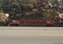 Previous Next Former Conrail class G43A gondola NYC 577063 rolled through Fairburn, GA on February 17, 2017. Photo By Alan Page Equipment Type Class G43A Post Conrail Owner CSX Post Conrail Number CSX 577063 Year 2017 Original Date 2/17/17 Collection CRHS Conrail Photo Archive Contributions