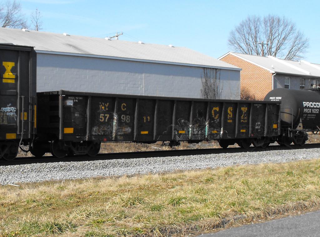 NYC 579811 is seen on CSX Q410-08 at Holmes PA on 3/10/13. Car is ex CR 579811.