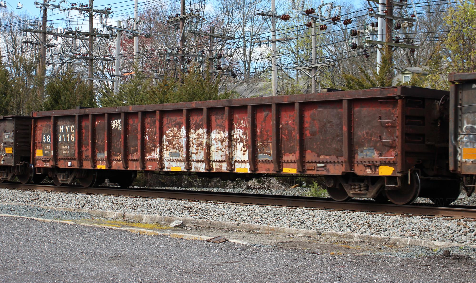 NYC 588116is seen in the consist of CSX M422-06 at Newark, DE on 4/7/24. Car is ex CR 588116/CR 580125/PC 580125 and was built 10-71 by Fruehauf as a PC G47 class gon.