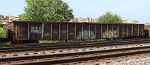 NYC 598052 is seen in PC paint at Green Spring, WV on 6/13/15. Car is ex PC 598052 and was built 4-68.