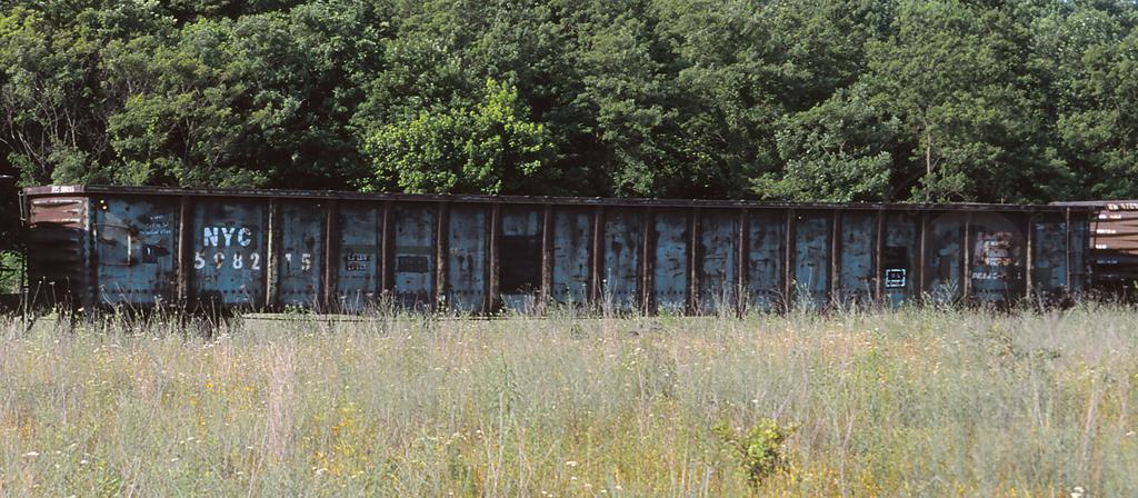 NYC 598215 is seen at Pattersons Creek WV on 6/20/02. Car is ex PC 598215 and was built 5-68.