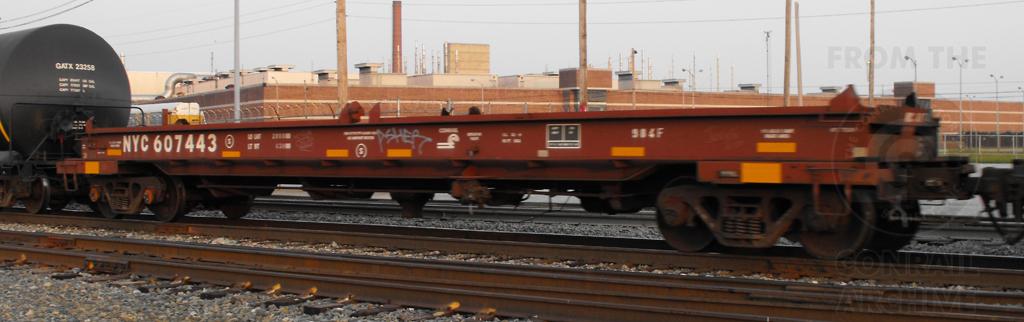 NYC 607443 is seen on Q439-22 at Elsmere DE on 7/22/09. Car is ex NYC 752091.