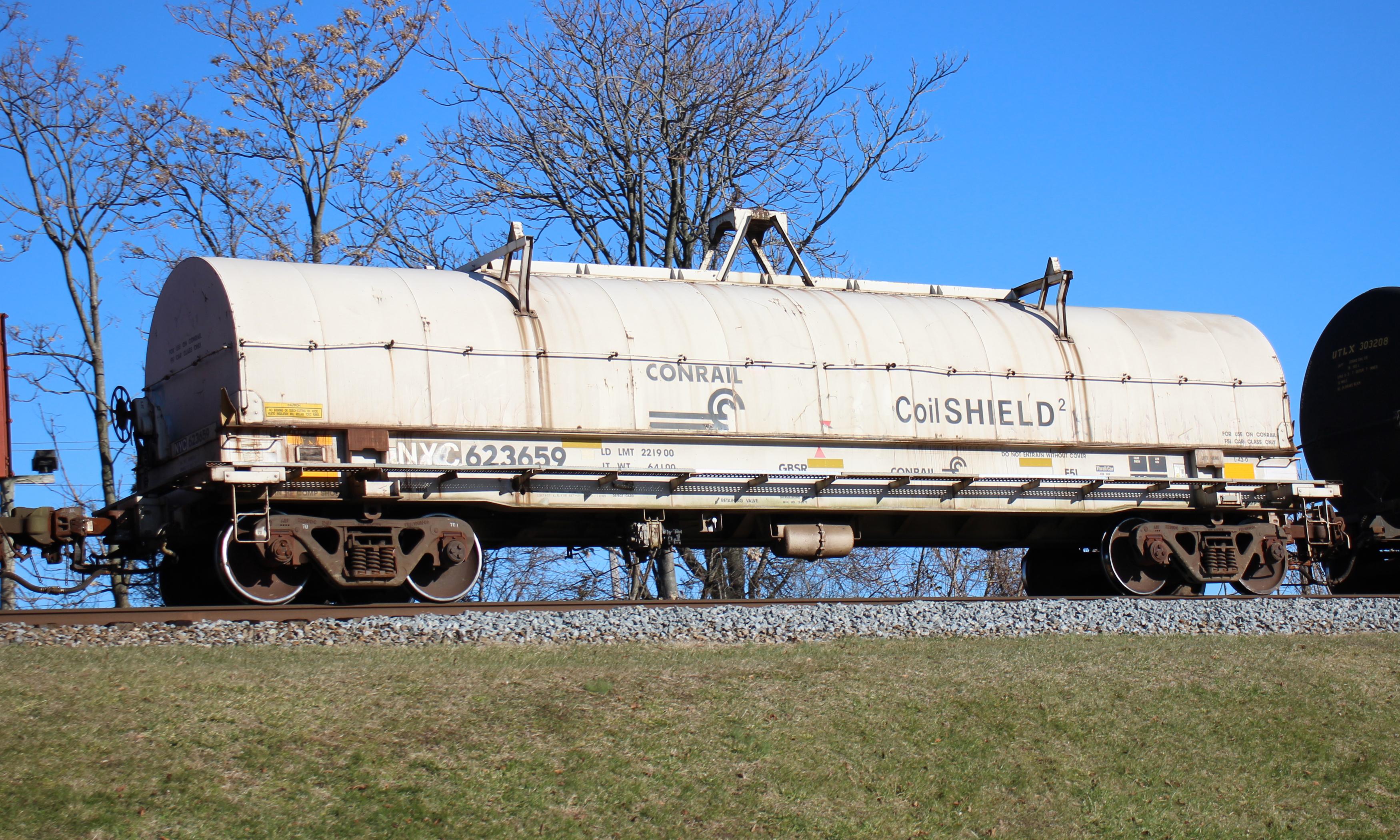 NYC 623659is seen in the consist of CSX Q421-08 at Newark, DE on 1/9/21. Car is ex CR 623659 and was built 5-97 by Thrall as part of Job 989.