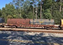 CSXT class F50 coil car NYC 627474 at Union City, GA on October 11, 2017.
