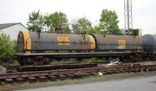 NYC 628081 is seen in the consist of CSX Q410-01 at Elsmere, DE on 5/3/20. Car is ex CR 628081, built 10-77 by Thrall and was painted CSX RA 5-02. Photo by Chris Carangi.