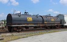 NYC 628163 is seen in the consist of CSX Q439-17 at Elsmere, DE on 8/19/14. Car is ex CR 628163.