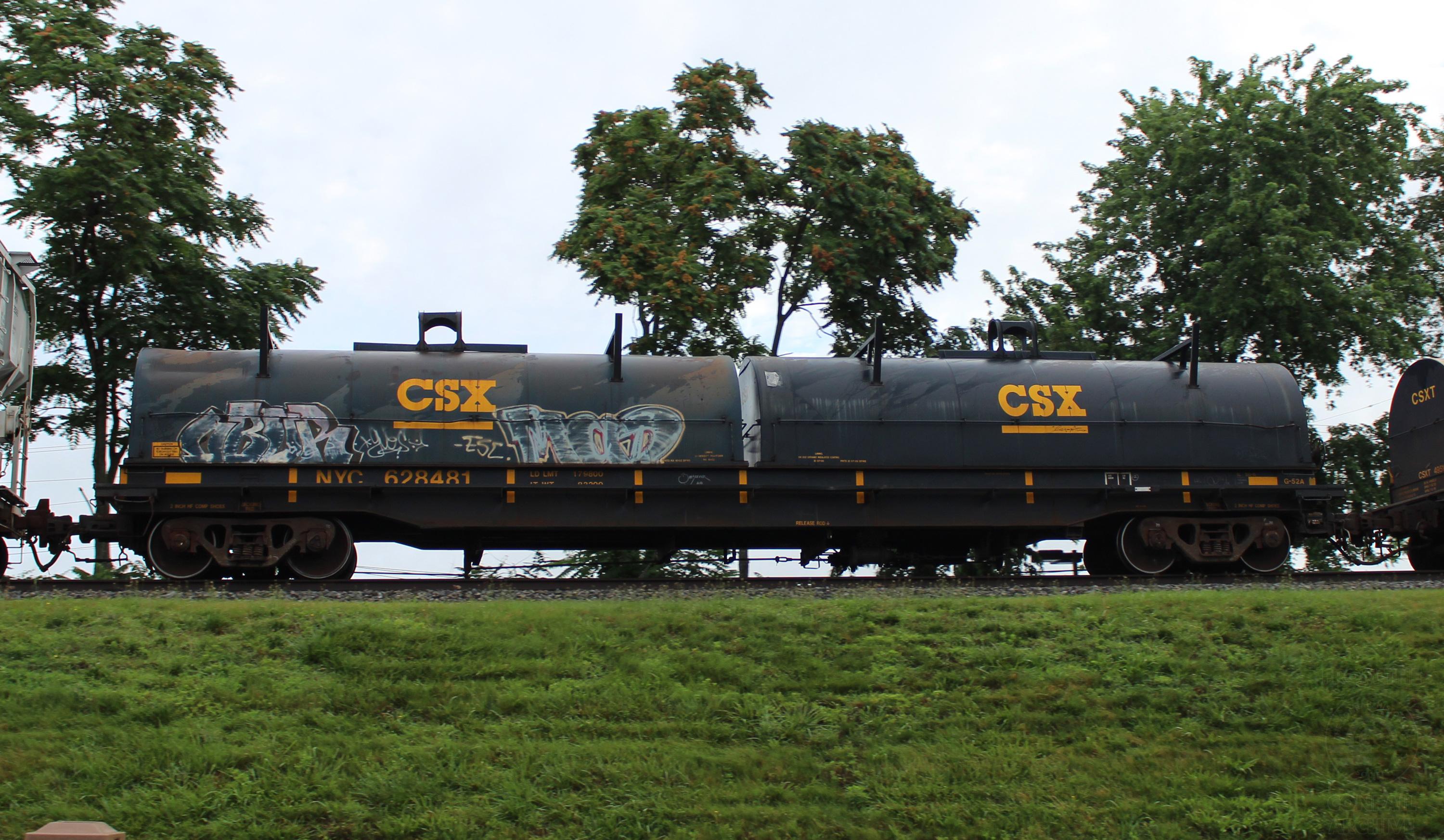 NYC 628481 is seen in the consist of CSX Q300-04 at Newark, DE on 7/5/16. Car is ex CR 628481 and was built 11-79 by Portec.