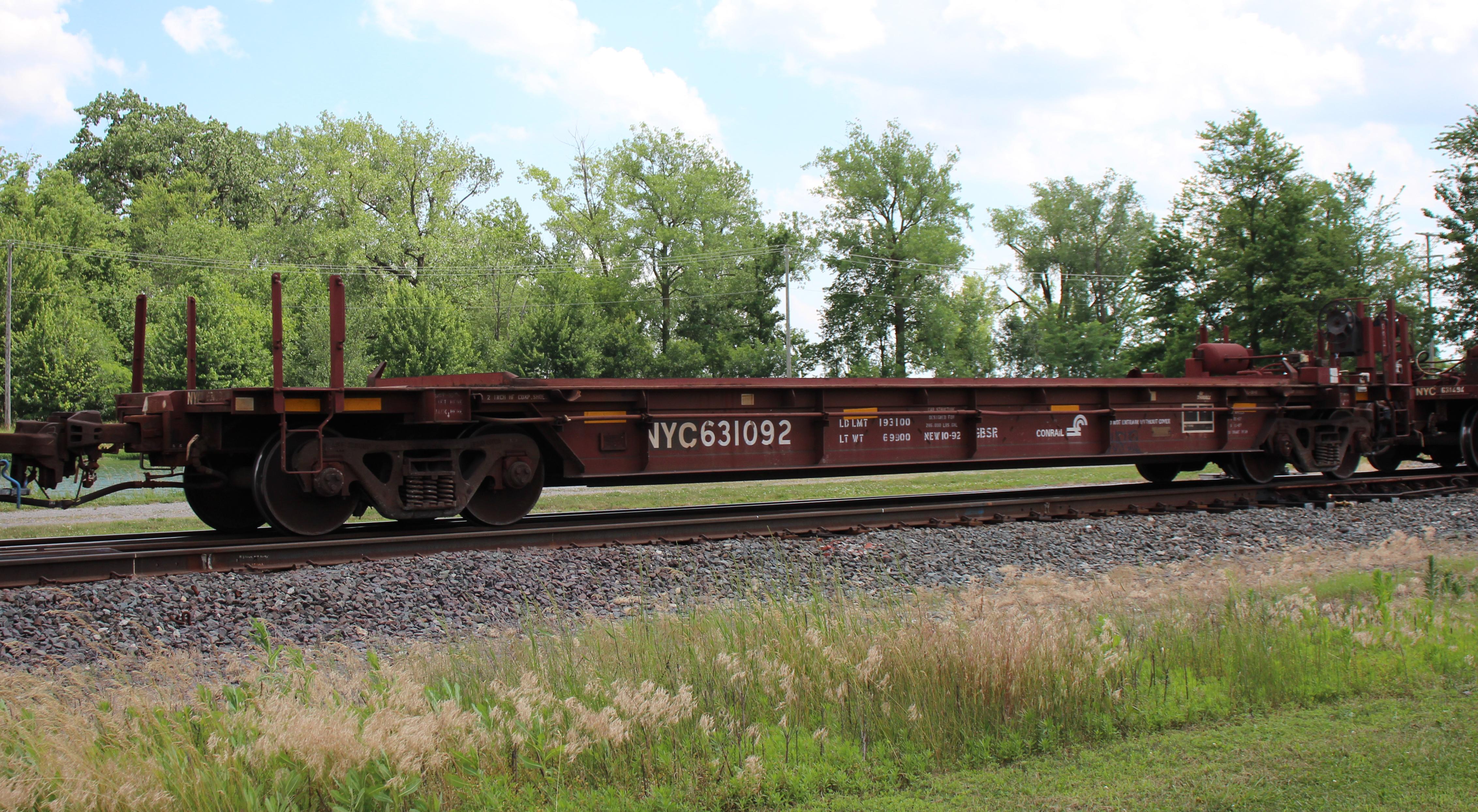 NYC 631092 is seen in the consist of CSX B523-27 at Deshler, OH on 6/27/25. Car is ex CR 631092and was built 10-92 by Thrall.