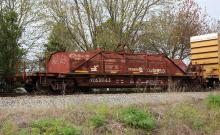NYC 631163 is seen in the consist of CSX Q410-23 at Newark, DE on 4/25/20. Car is ex CR 631163 and was built 9-93 by Thrall. Photo by Chris Carangi.
