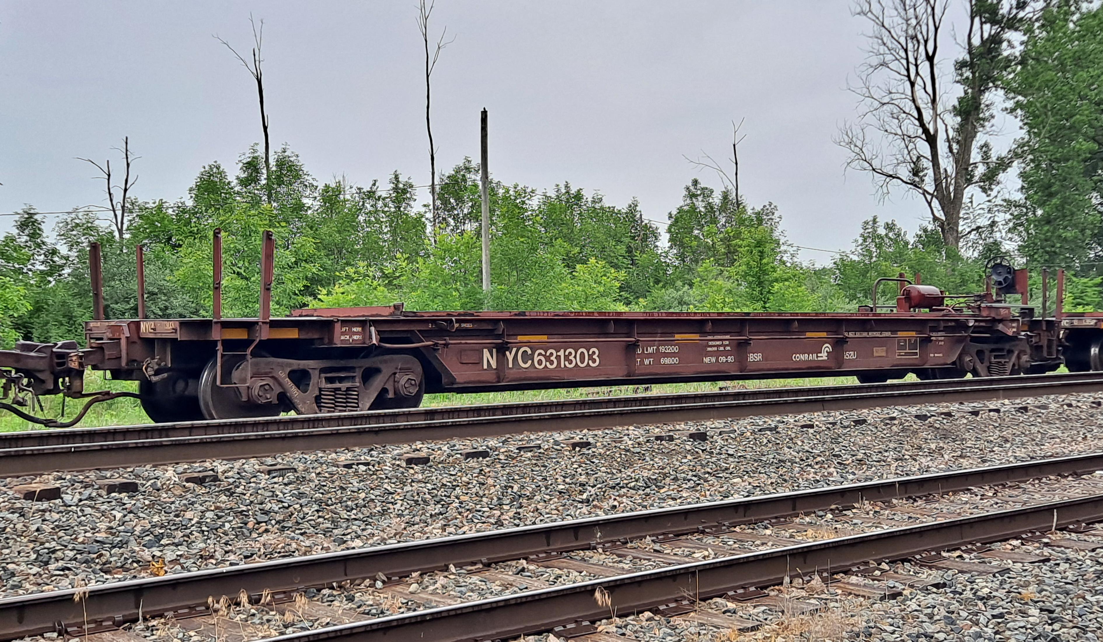 NYC 631303 is seen in the consist of CSX B522-23 at Deshler, OH on 6/23/23. Car is ex CR 631303 and was built 9-93 by HCS.