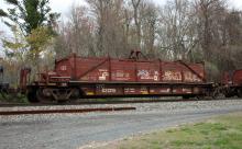 NYC 631319 is seen in the consist of CSX Q410-02 at Perryville, MD on 4/4/20. Car is ex CR 631319 and was built 9-93 by HCS. Photo by Chris Carangi.