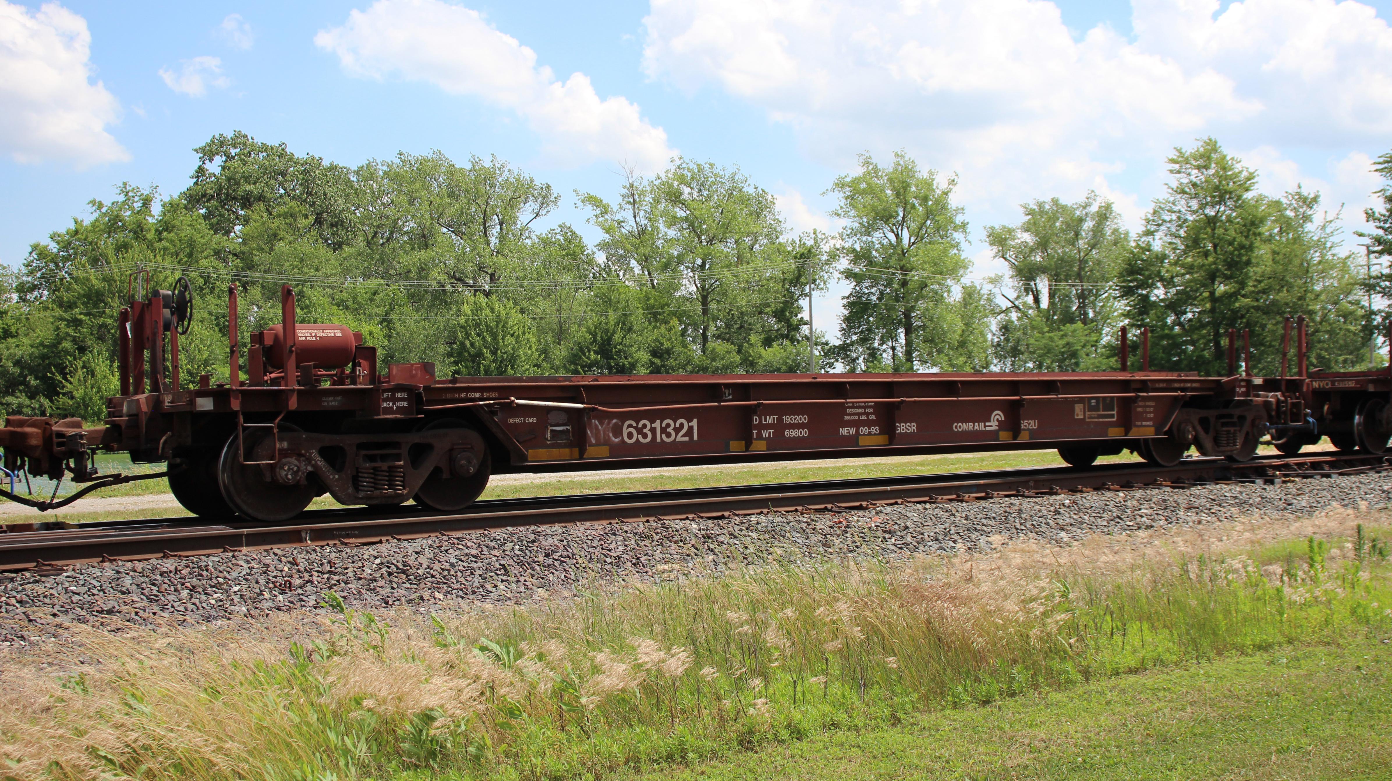 NYC 631321 is seen in the consist of CSX B523-27 at Deshler, OH on 6/27/25. Car is ex CR 631321and was built 9-93 by HCS