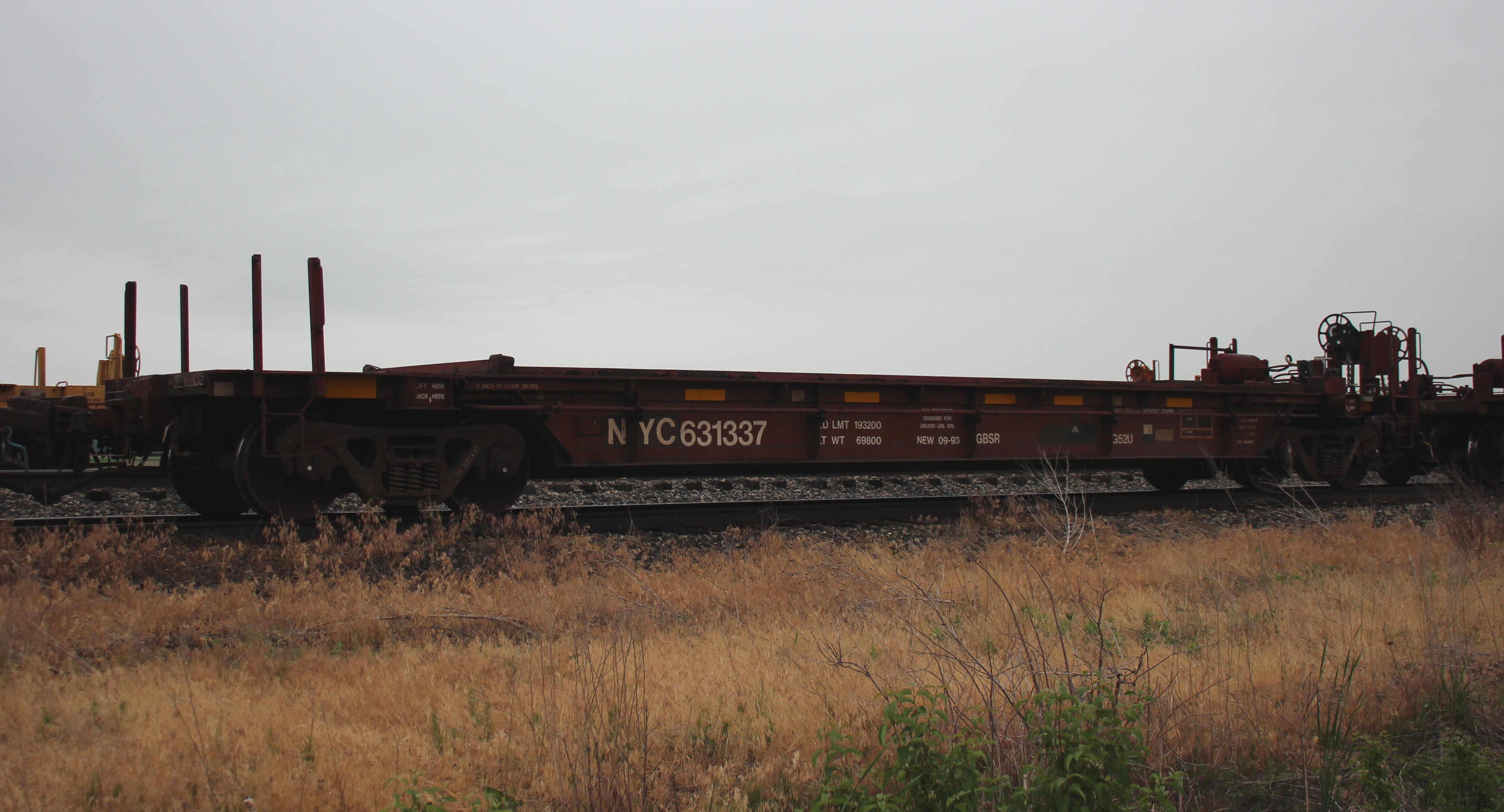 NYC 631337 is seen in the consist of CSX B522-23 at Deshler, OH on 6/23/23. Car is ex CR 631337 and was built 9-93 by HCS.