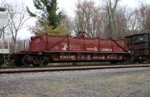 NYC 631487 is seen in the consist of CSX Q409-03 at Newark, DE on 4/4/20. Car is ex CR 631487 and was built 10-95 by HCS. Photo by Chris Carangi.