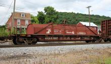 NYC 631587 is seen in the consist of CSX Q369-20 at Cumberland, MD on 6/20/19. Car is ex CR 631587 and was built 11-95 by HCS.