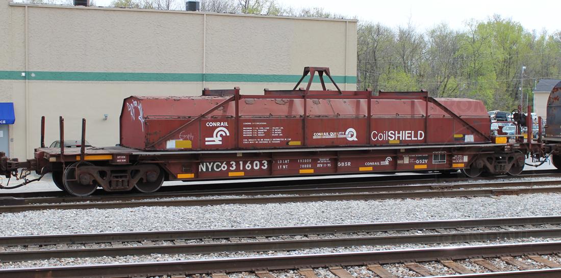 NYC 631603 is seen in the consist of CSX Q300-18 at Elsmere, DE on 4/19/16. Car is ex CR 631603 and was built 11-95 by HCS.