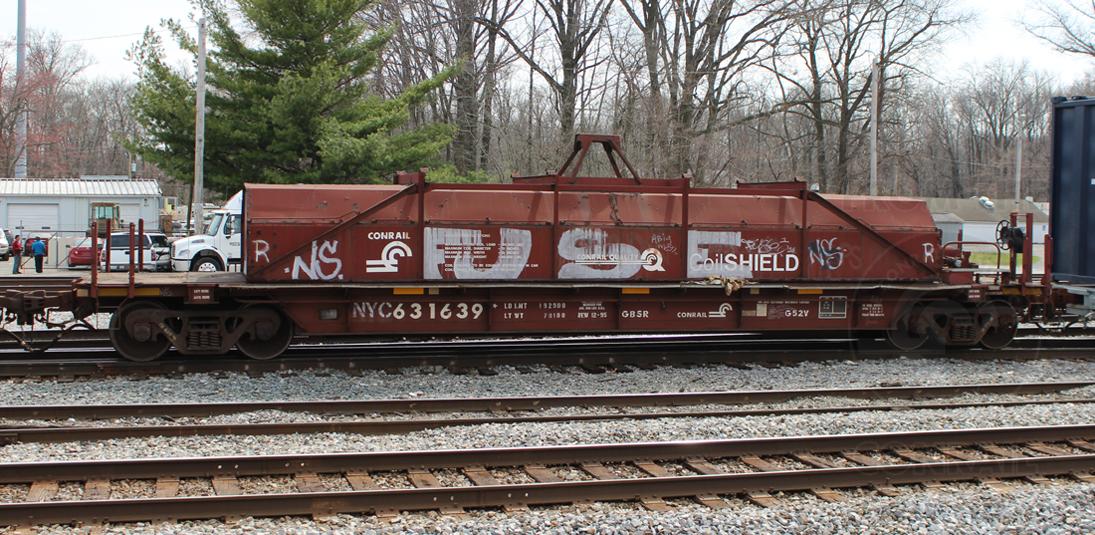 NYC 631639 is seen in the consist of CSX Q300-22 at Elsmere, DE on 3/23/16. Car is ex CR 631639 and was built 12-95 by HCS.