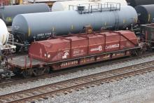 NYC 631696 is on an eastbound arriving at Cumberland, MD on 4/26/2016. Car is ex CR 631696 and was built 1-96 by HCS.