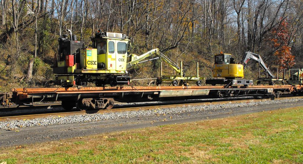 NYC 725282 is seen on W035-09 at Brunswick MD on 11/12/11. Car is ex CR 725285/MDAX unknown built 9-61. Note car is still in MDT green.