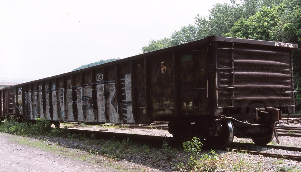 Previous Next PC 598746 is seen at Hancock WV on 6/5/02. Car was built 5-72 by Fruehauf. Photo By Jeff Weaver Equipment Type Class G46 Predecessor Paint Scheme PC Post Conrail Owner CSX Post Conrail Number CSX 598746 Year 2002 Original Date 6/5/02 Collection CRHS Conrail Photo Archive Contributions
