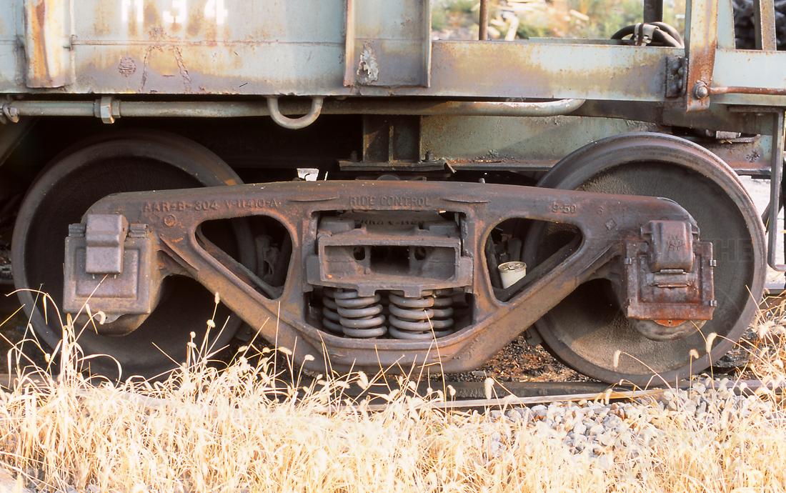Previous Next Detail view of old (9/1950) friction bearing truck under sand car PC 74202. Photo By Jeff Weaver Equipment Type Sand Cars Predecessor Paint Scheme PC Post Conrail Owner Norfolk Southern Post Conrail Number NS 74202 Year 2001 Original Date 9/23/01 Collection CRHS Conrail Photo Archive Contributions