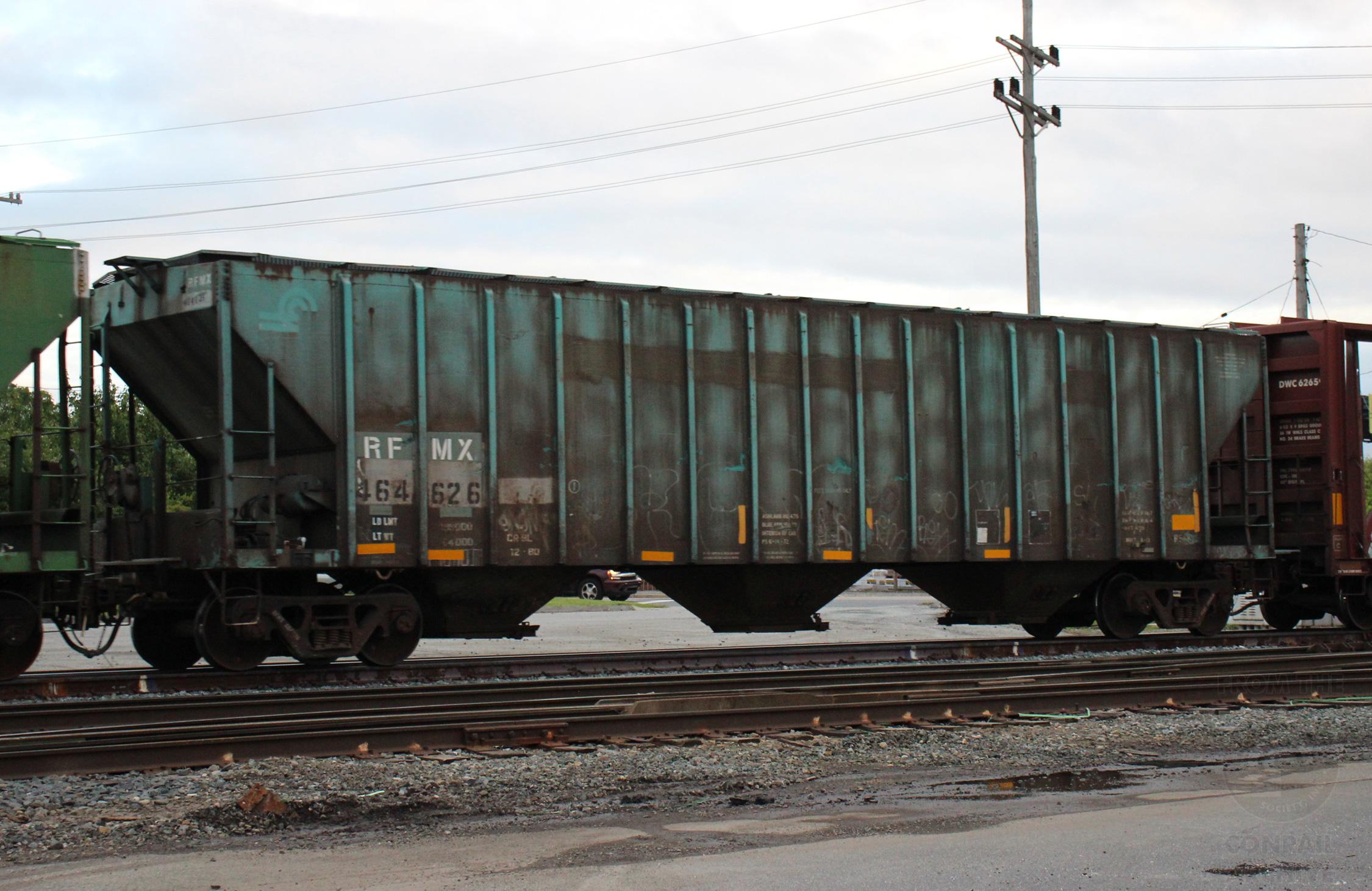 RFMX 464626 is seen in the consist of CSX Q410-22 at Elsmere, DE on 5/24/20. Car is ex BN 464626/RFMX 890135/CR 890135/PC 890135 and was built 6-72 by P-S. Photo by Chris Carangi.