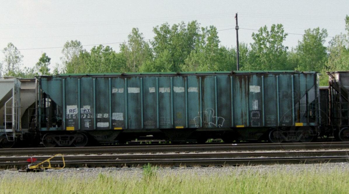 Previous Next Still showing its Penn Central paint, RFMX 464777 sits at New Haven, IN on May 22, 2010. Car is ex BN 464777/CR 890328/PCB 890328. Photo By Chris Howe Equipment Type Class H54B Year 2010 Original Date 5/22/10 Collection CRHS Conrail Photo Archive Contributions