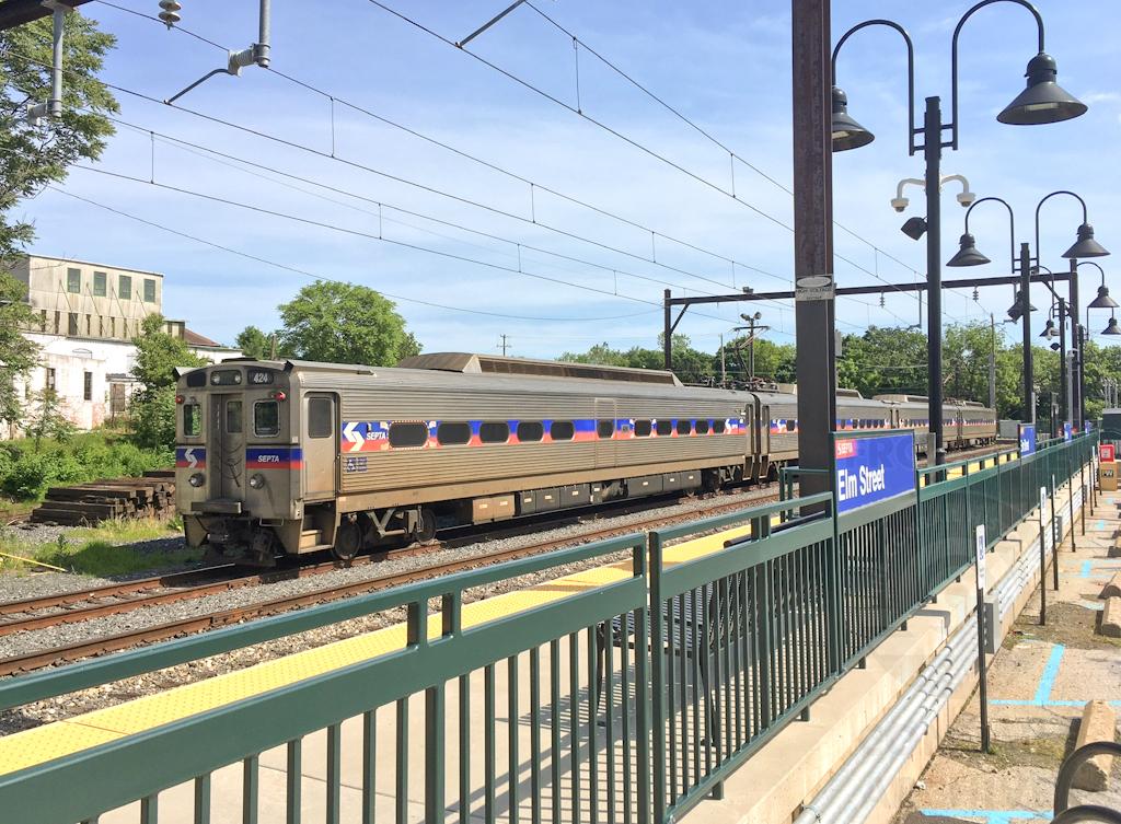 Septa Silverliner IVs 424, 423, 114, and 113 lay over at Elm Street Station in Norristown, PA on May 29, 2022.