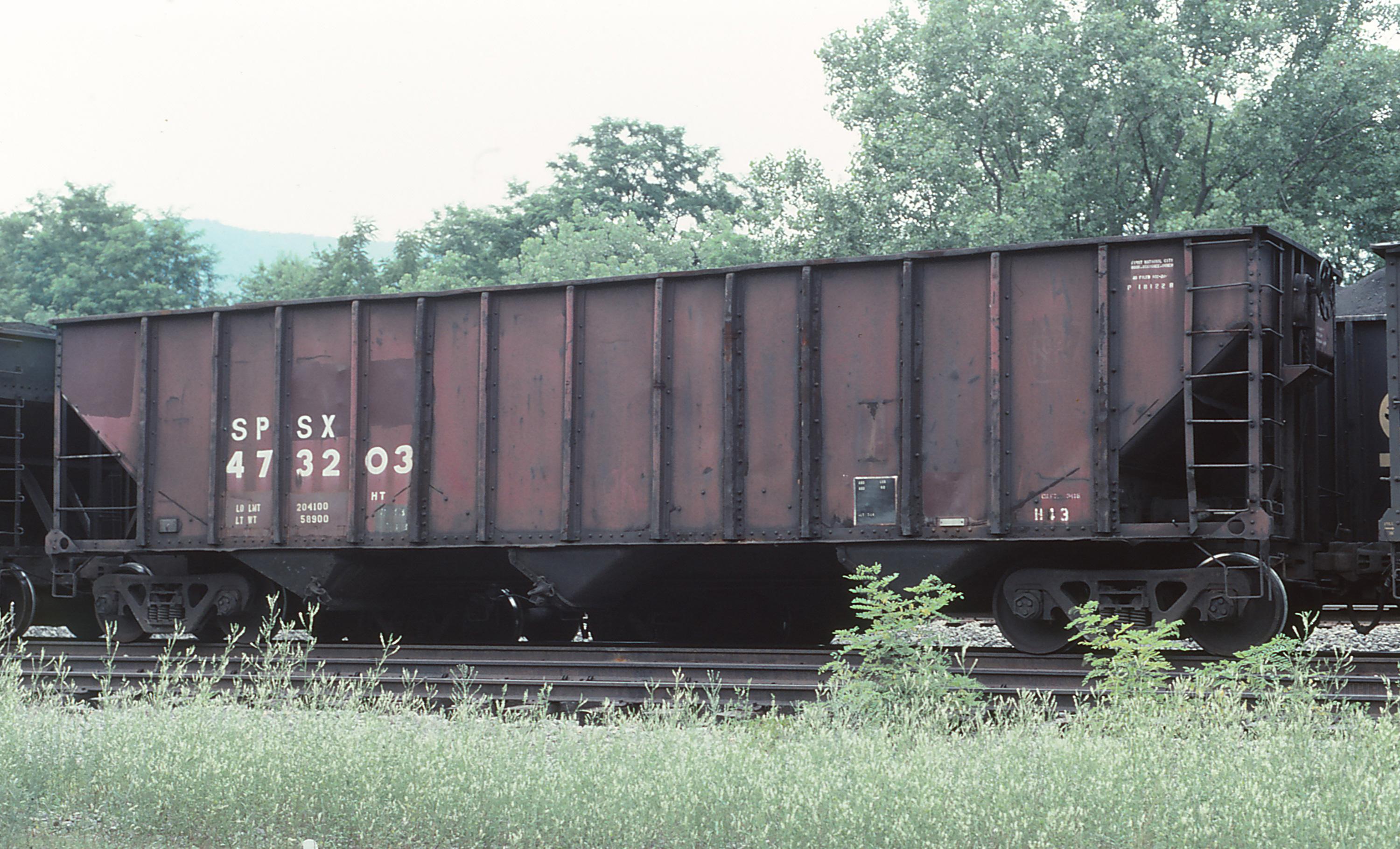 SPSX 473203 is seen at Keyser, WV on 6/28/96. Car is ex CR 473203/PRR 181228, built 7-64 and was deleted 9/28/00.