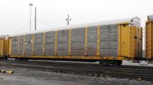 TTGX 156931 is seen in the consist of CSX Q217-29 at Elsmere DE on 6/29/12. Rack was built as an unknown CR ML2L class rack in 1-92. It was then rebuilt, repainted, and renumbered to NS 27122 in 5-05 by MEI ESTL. Rack is now classed FB550 but is also stenciled ML2L.