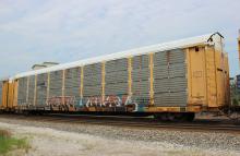 TTGX 157316 is seen in the consist of CSX Q217-12 at Savage, MD on 5/12/17. Rack was built as CR 8329, a CR ML2L class rack, in 5-90 then was rebuilt, repainted, and renumbered to NS 27258 in 1-06. Rack is now classed FB548 by NS. Photo By: Chris Carangi