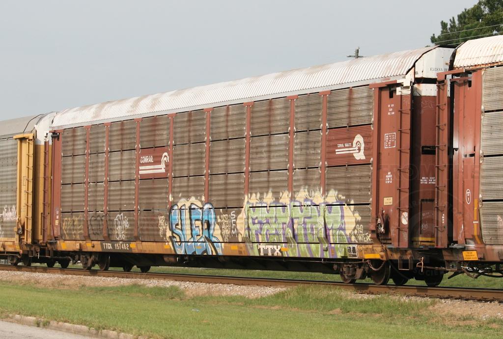 Previous Next CSXT TTGX 157462 class ML2G autorack CR 6834 rolls through Fairburn, GA on September 24, 2017. Photo By Alan Page Equipment Type TTGX Bi-Levels Post Conrail Number 157462 Year 2017 Original Date 9/24/17 Collection CRHS Conrail Photo Archive Contributions