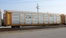 TTGX 157687 is seen in the consist of CSX Q216-19 at Elsmere, DE on 7/20/19. Rack was built as CR 8448, a CR ML2L class rack, in 5-90. It was then rebuilt, repainted and renumbered to NS 28269 in 1-19 by TrinityRail. Rack does not have a new NS class stenciled on it. I have now photographed this rack in CR & NS paint. Photo by Chris Carangi.