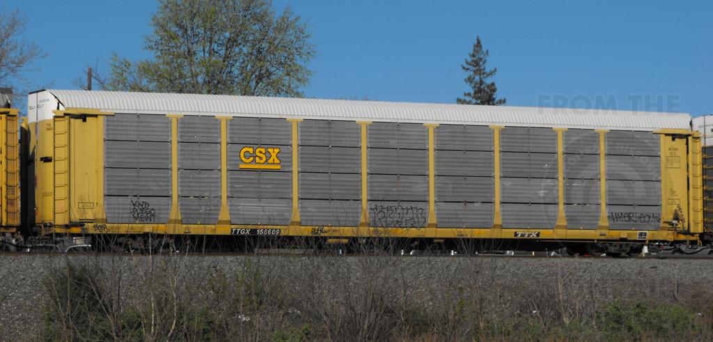 TTGX 158609 is seen in CSX paint on 18N at Marysville PA on 4/7/12. Rack number is still CR 8203.