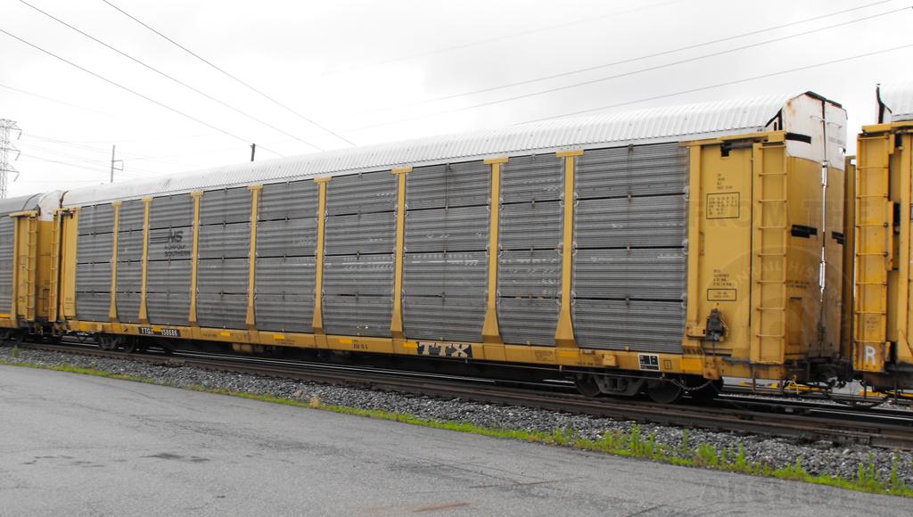 TTGX 158686 is seen in NS paint on Q216-10 at Elsmere DE on 6/12/12. Rack is a former CR ML2G class rack, and was rebuilt, repainted and renumbered CR 26105 in 12-03. Rack number should be NS 26105.
