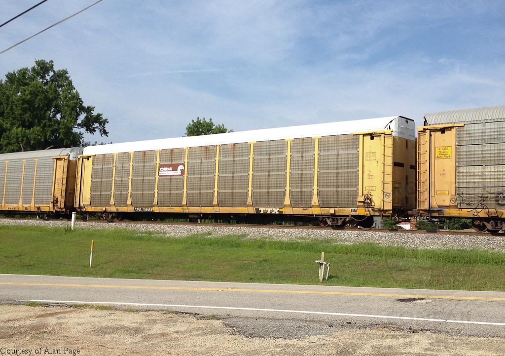 Previous Next TTGX autorack 159668 at Tyrone, GA on July 11, 2014. Photo By Alan Page Equipment Type TTGX Bi-Levels Post Conrail Owner CSX Year 2014 Original Date 7/11/14 Collection CRHS Conrail Photo Archive Contributions