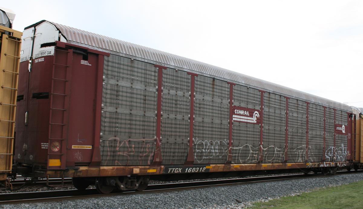 Previous Next TTGX 160312 is seen at Cumberland, MD on 9/1/12. Rack number is CR 7493 (ML2K), rebuilt 8-97. Photo By Donnie Lee Location Details Virginia Ave Equipment Type TTGX Bi-Levels Year 2012 Original Date 9/1/12 Collection CRHS Conrail Photo Archive Contributions