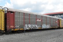 TTGX 160842 is seen in NS 36A at Altoona PA on 6/28/13. Rack number is CR 7684, built 2-89, rebuilt 10-97 and is now owned by CSX.