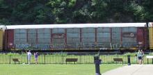 TTGX 254399 is seen in the consist of NS 36A as it rounds Horseshoe Curve in Altoona, PA on 6/12/15. Rack number is CR 1628, built 11-84 and is now owned by CSX.
